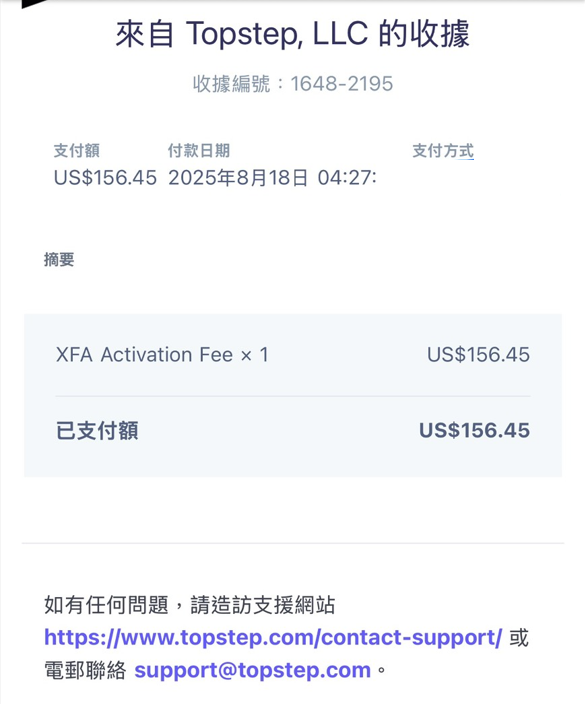 附帶一提,在台灣的使用者,是會收到 Topstep 官方的電子發票哦!